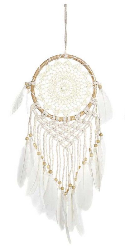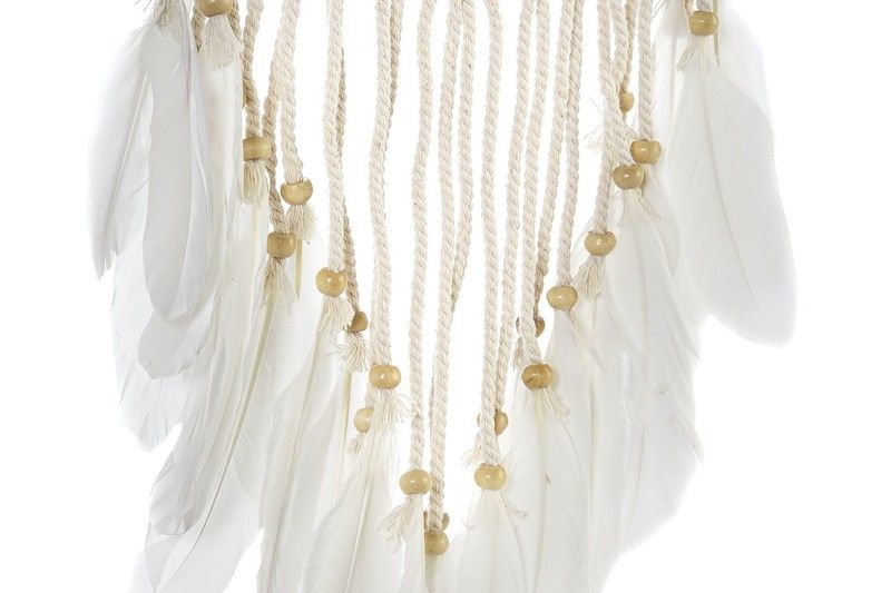 Atrapasueños crochet 19x2x65 cm, color blanco, madera, algodón y plumas sintéticas, decorativo y artesanal.